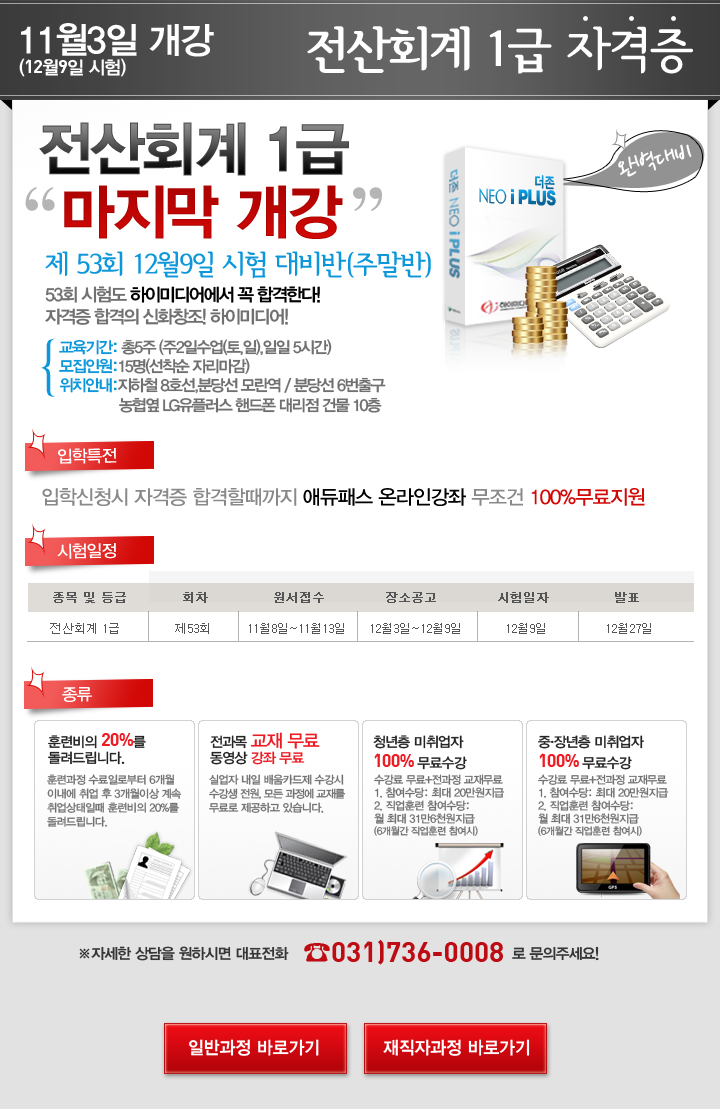 [공지] 전산회계 1급 자격증 대비반 개강안내